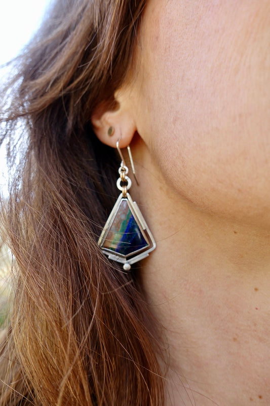 Bold Lapis Lazuli & Dendritic Agate Earrings with Hinged Sterling Silver Design