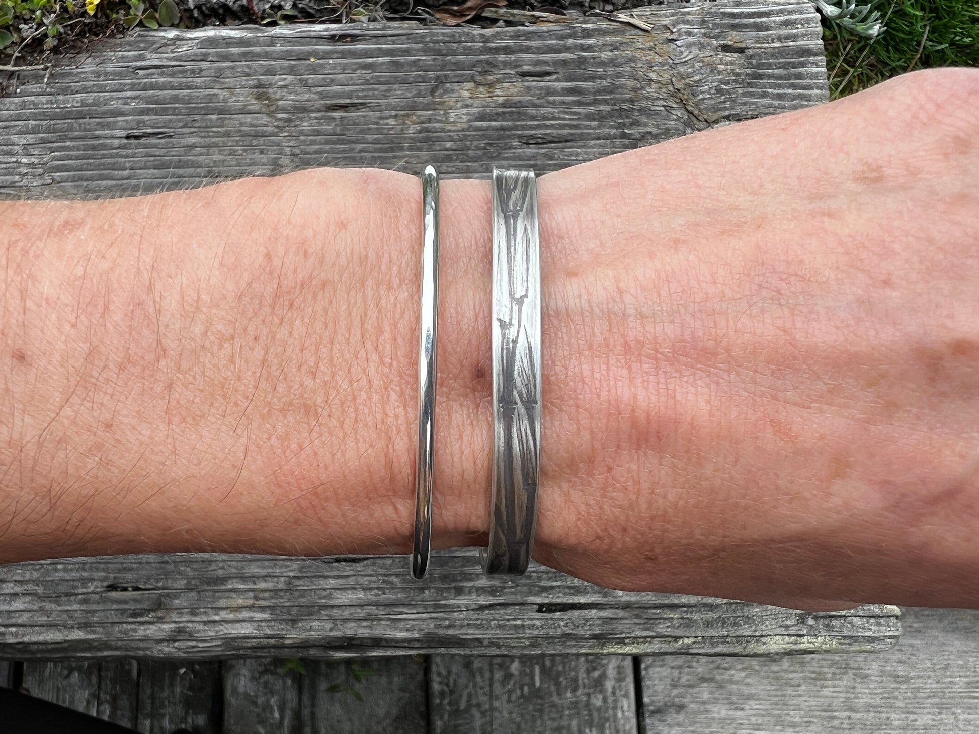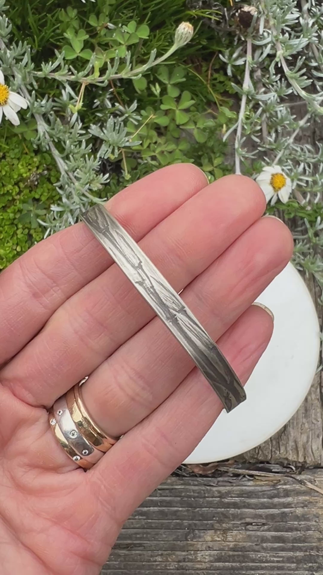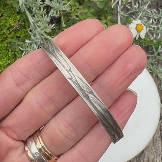 Sturdy and simple; each piece is created with nature's touch, using dried leaves, grasses, lichens and other organic materials to roller-print textured directly into sterling silver. This process captures the delicate details of the natural world, ensuring that every impression is one-of-a-kind and impossible to replicate.