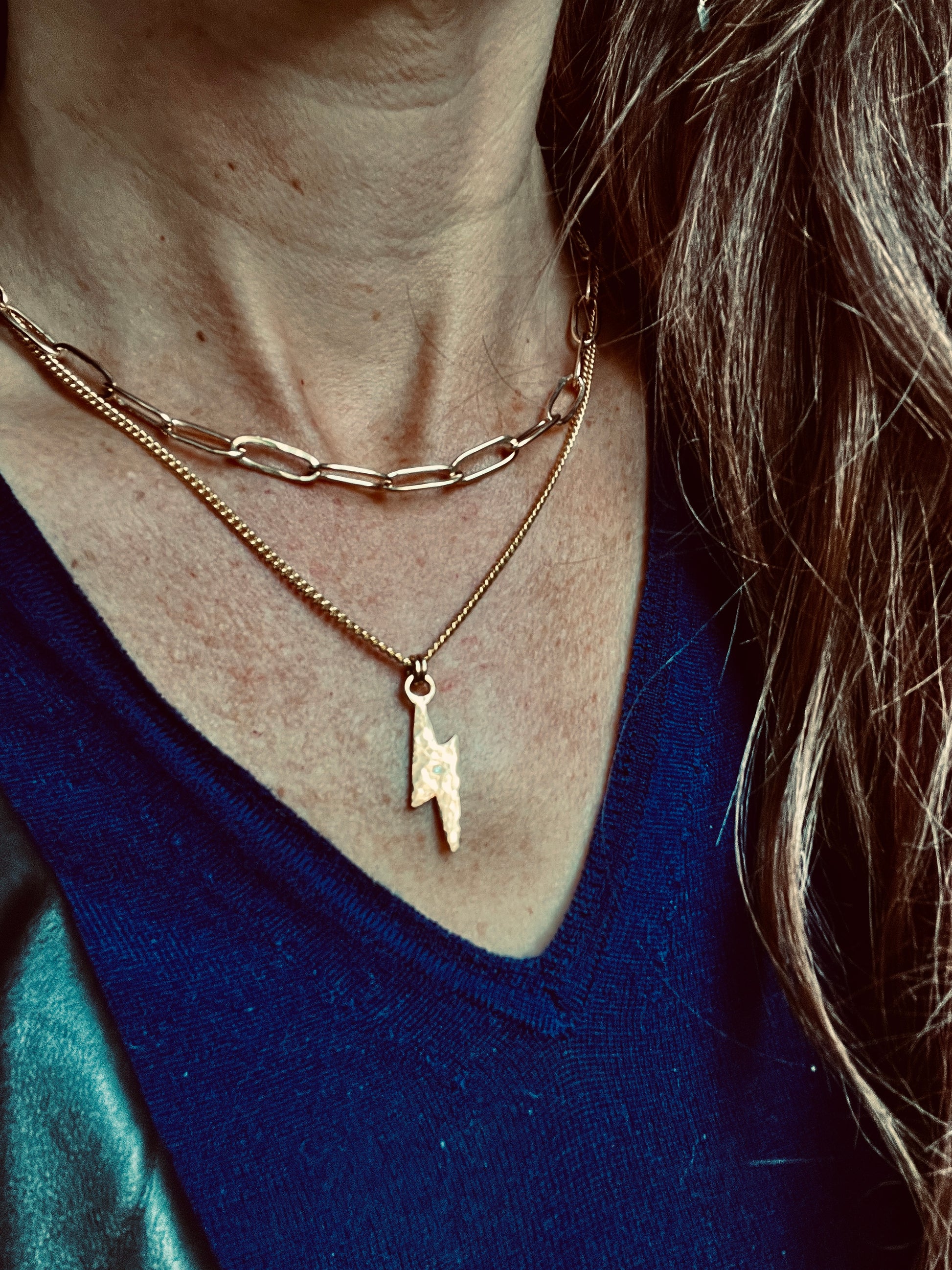 Strike the perfect balance between bold and elegant with this dazzling lightning charm necklace.