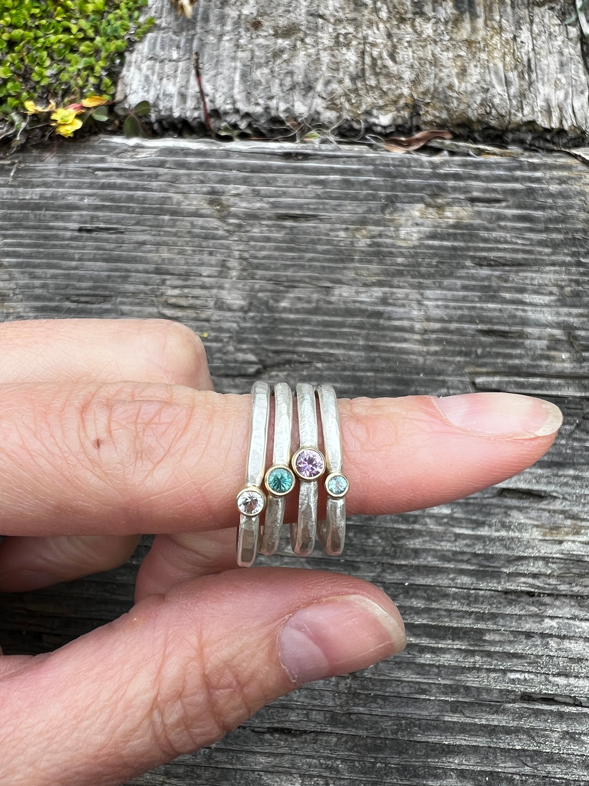 Mixed Metal Gemstone Stacking Rings ~ Sterling Silver & 14k Yellow Gold